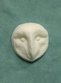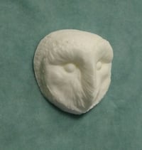 This is a small, 1.75" barn owl face, cast in off white resin. It's sanded flat on the back and can be used for a variety of crafts.