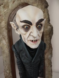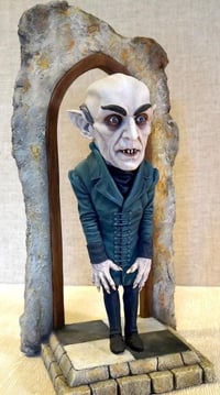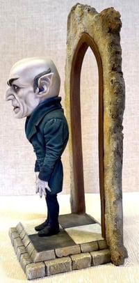 Here's the classic vampire, Nosferatu, at home with his gothic arch doorway. The kit is over 12" tall when assembled! Though, Nosferatu himself is more like 8" tall.